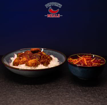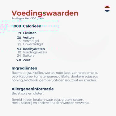 Luchtige basmati rijst met gemarineerde malse kip en een verfrissende knapperige salade.