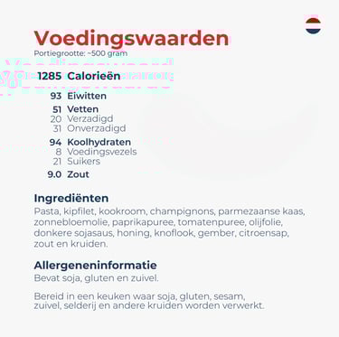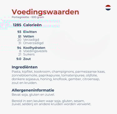 Romige pasta met gemarineerde malse kip, parmezaanse kaas en heerlijke champignons.