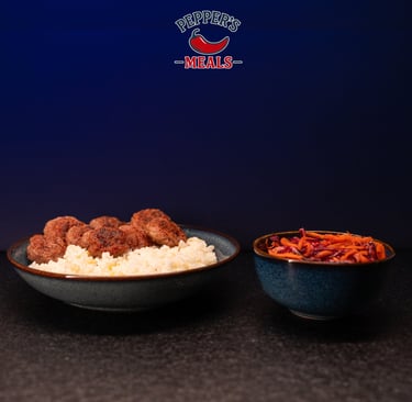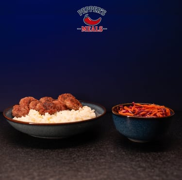 Huisgemaakte köfte met boterige baldo rijst en een verfrissende knapperige salade.
