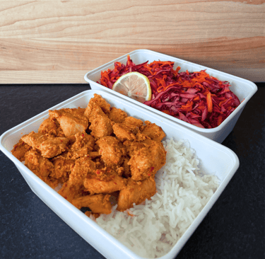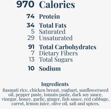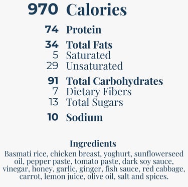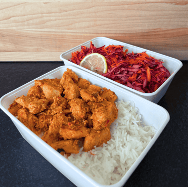 Fluffy basmati rice with tender marinated chicken and a refreshing crisp salad on the side.