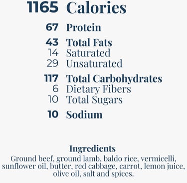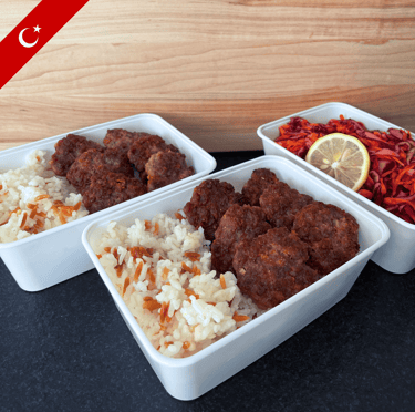 Juicy handmade köfte with buttery baldo rice and a refreshing crisp salad on the side.