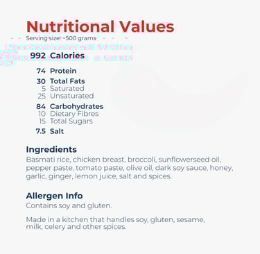 Fluffy basmati rice with tender marinated chicken and vibrant green steamed broccoli.
