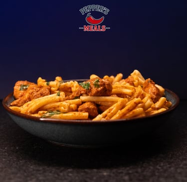 Creamy and cheesy pasta with tender marinated chicken.