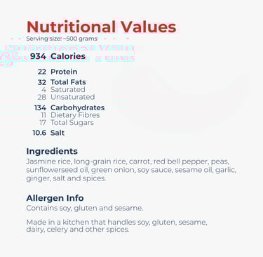 Hearty fried rice loaded with vegetables and deep, savoury wok flavours.