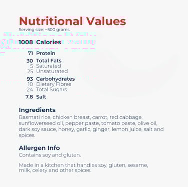 Fluffy basmati rice with tender marinated chicken and a refreshing crisp salad on the side.