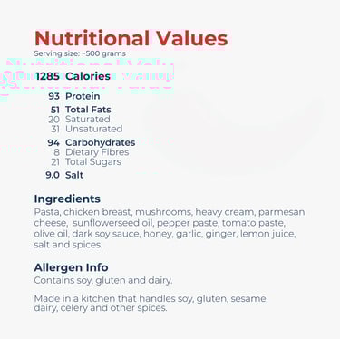 Creamy and cheesy pasta with tender marinated chicken and delicious mushrooms.